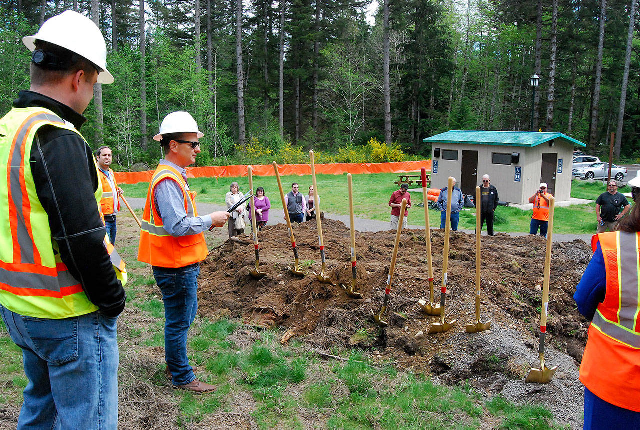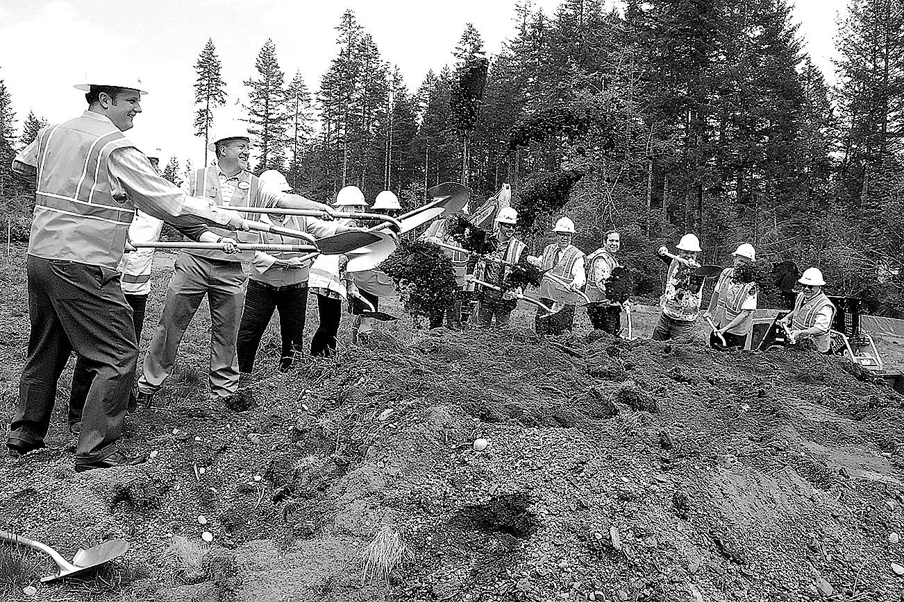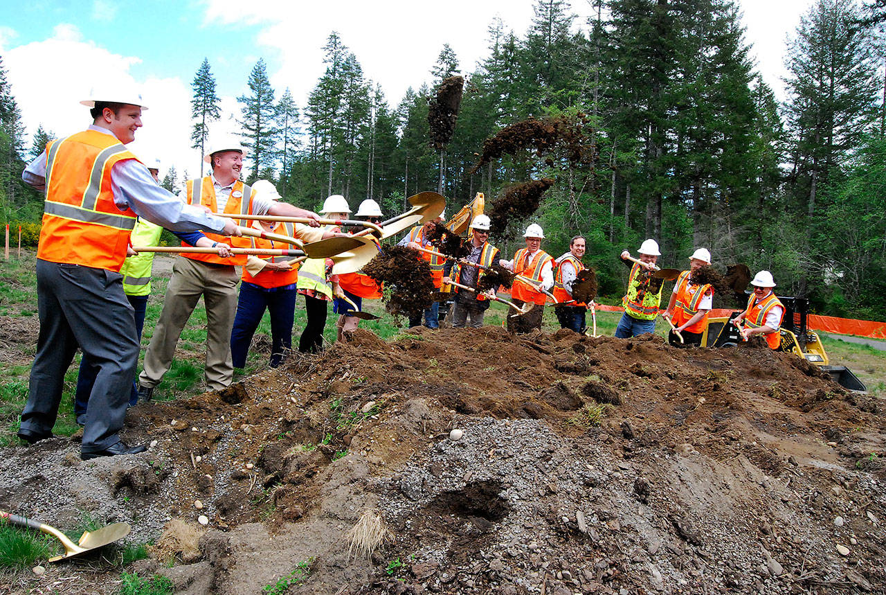 PORT ORCHARD — Civic leaders and 26th Legislative District representatives grabbed ceremonial shovels on Friday, May 11, tossed loads of dirt skyward and started the clock to complete the second phase of work at 65-acre McCormick Village Park, just off Old Clifton Road.