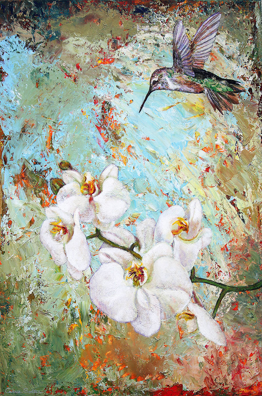 Sophie Frieda, whose studio is on Bainbridge Island, is another local whose works are displayed. Originally from England she is now a U.S. citizen and paints “floratanicals” (lush, brilliantly tined and stunning botanical plants and flowers).