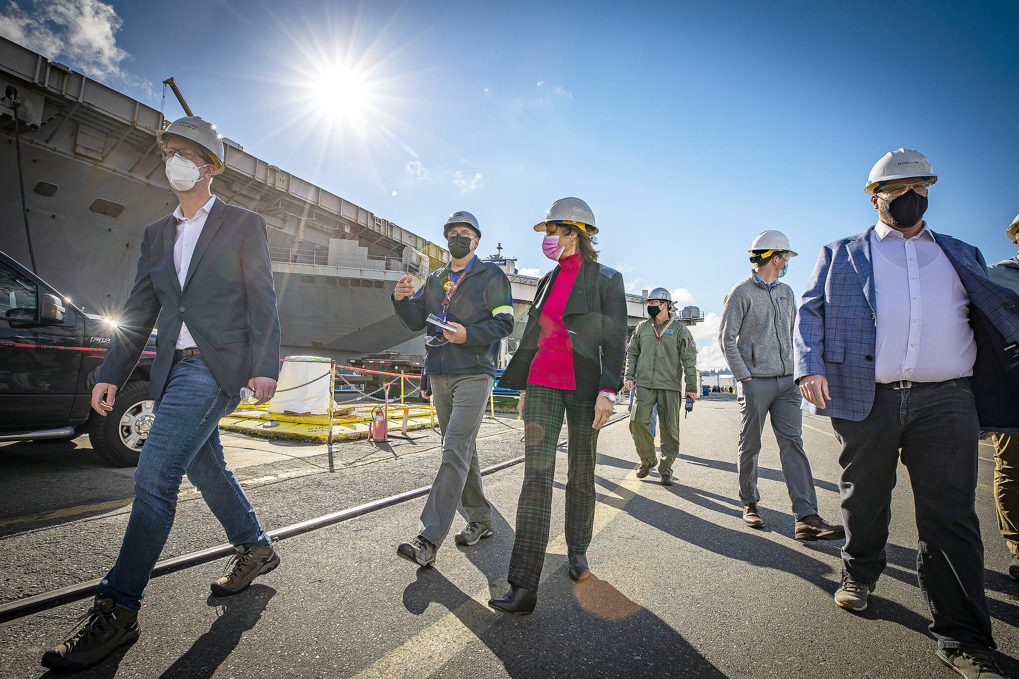 The visit included a tour of the Puget Sound Naval Shipyard (PSNS), a roundtable discussion with small businesses and a tour of Naval Base Kitsap.