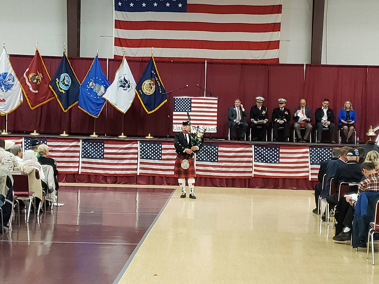 Bagpiper Michael Oliver opened the ceremony with a prelude, while the Bremerton High School Wind Ensemble was also on hand to play an armed forces medley for all the branches of the military.