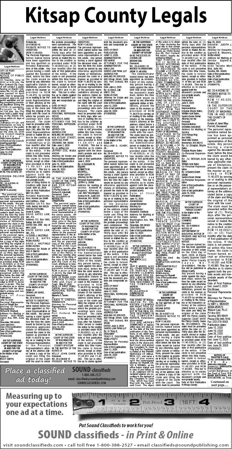 Kitsap County legal notices | June 12, 2020