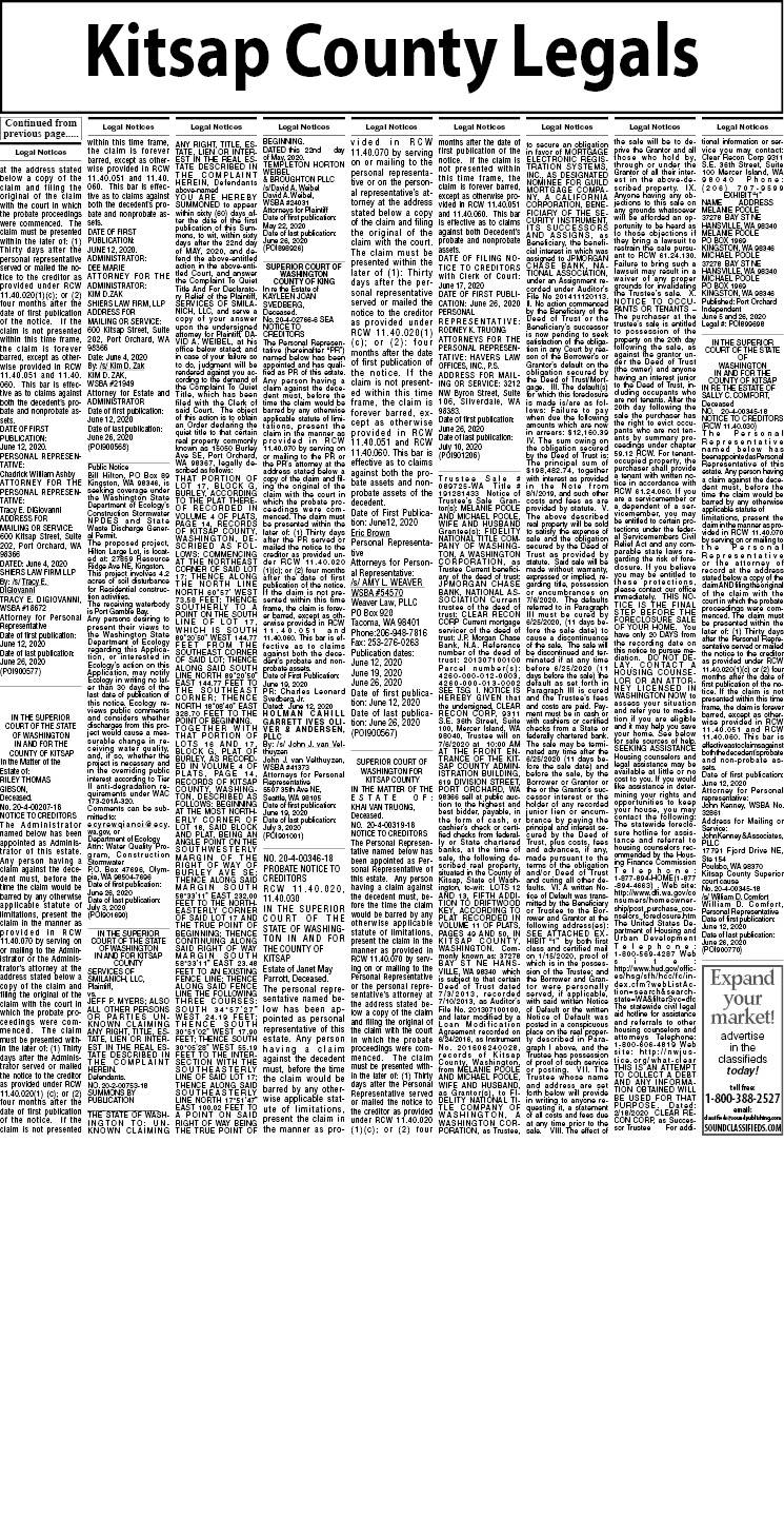 Kitsap County legal notices | June 26, 2020