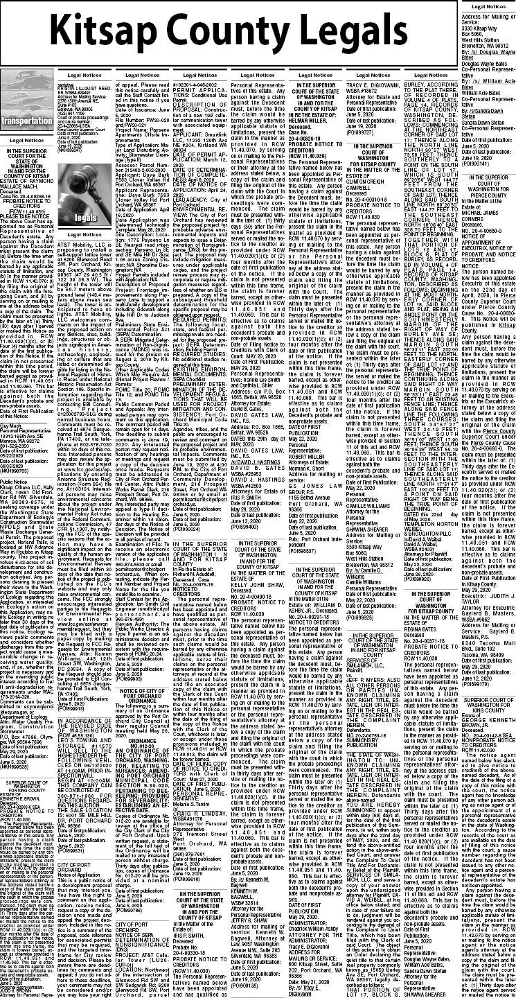 Kitsap County legal notices | June 5, 2020