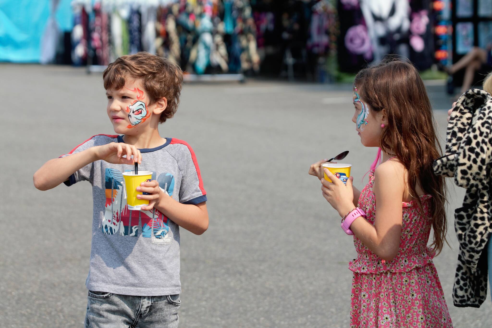 Two kids enjoy some frozen treats on a hot Sunday at the Kitsap Fair.
