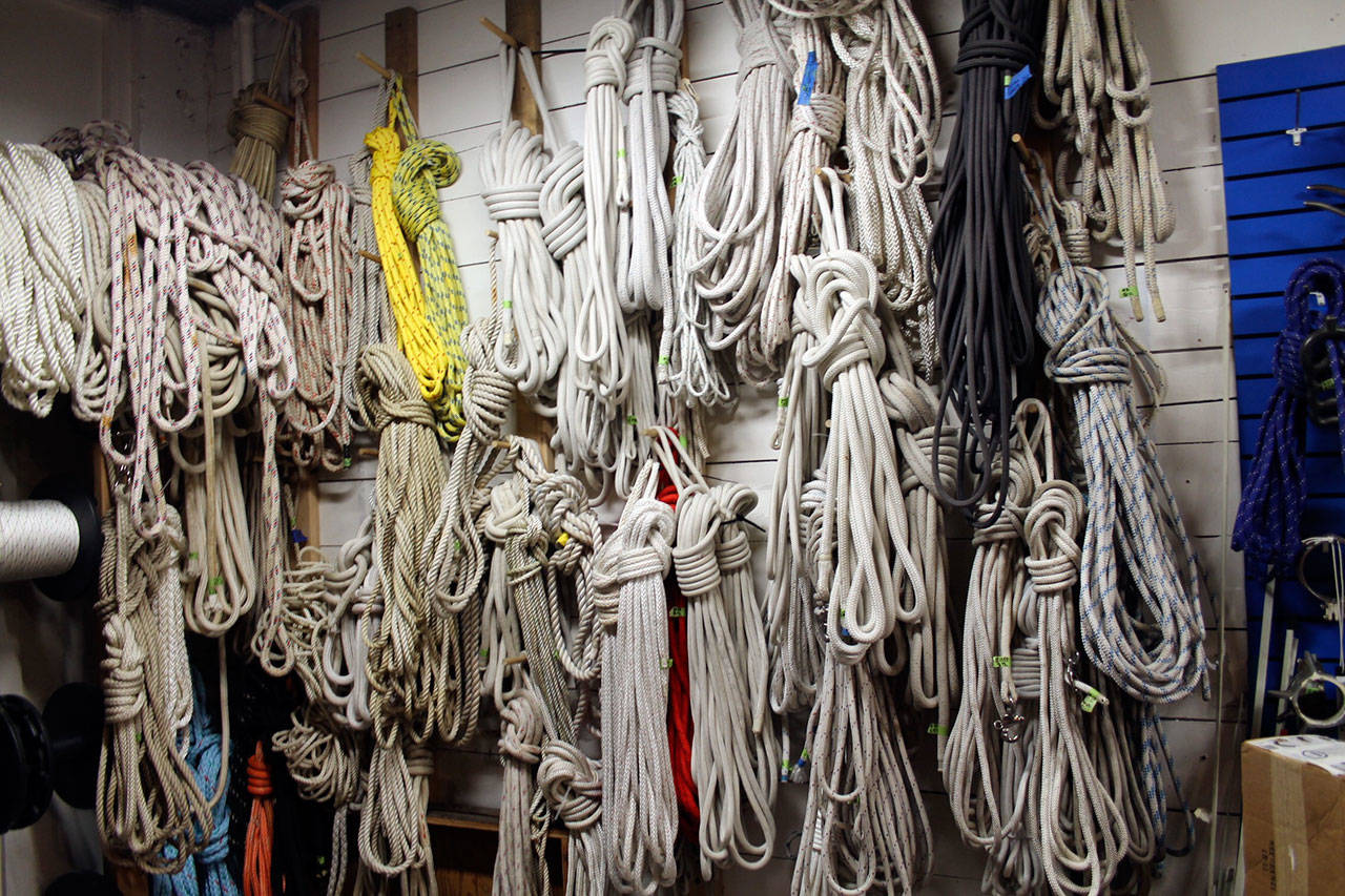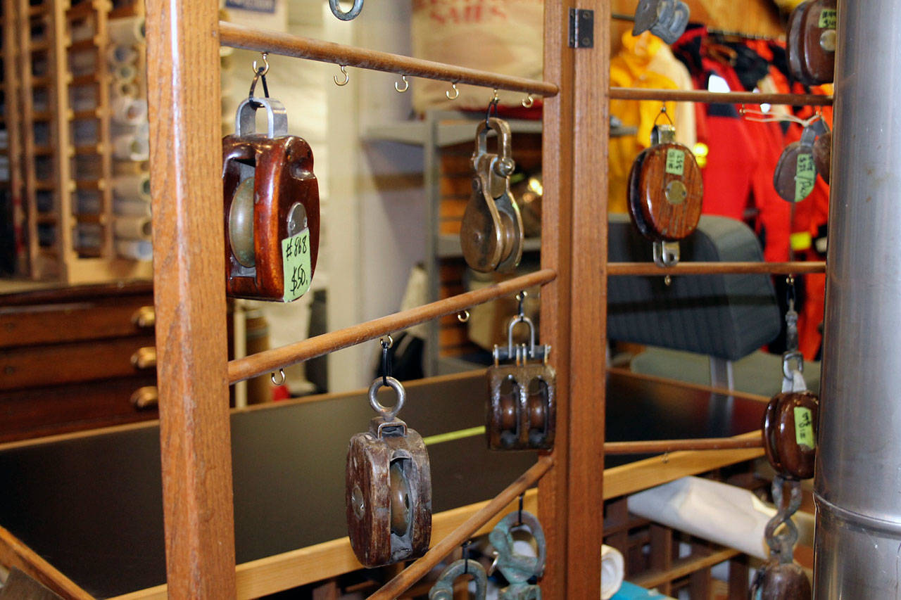 At first glance, Wenholz’s store seems like any other local shop, but only a couple steps inside reveal to newcomers that Longship Marine is an entirely separate animal altogether. Propped up against a wall beneath a rack of fleeces are dozens of brass propellers; wooden sailing blocks (pulleys) of various size hang from a rack; boat wheels ranging in size from small to chest-height line the walls in the front and back; and a mass of rope covers one entire wall and wraps around a corner.