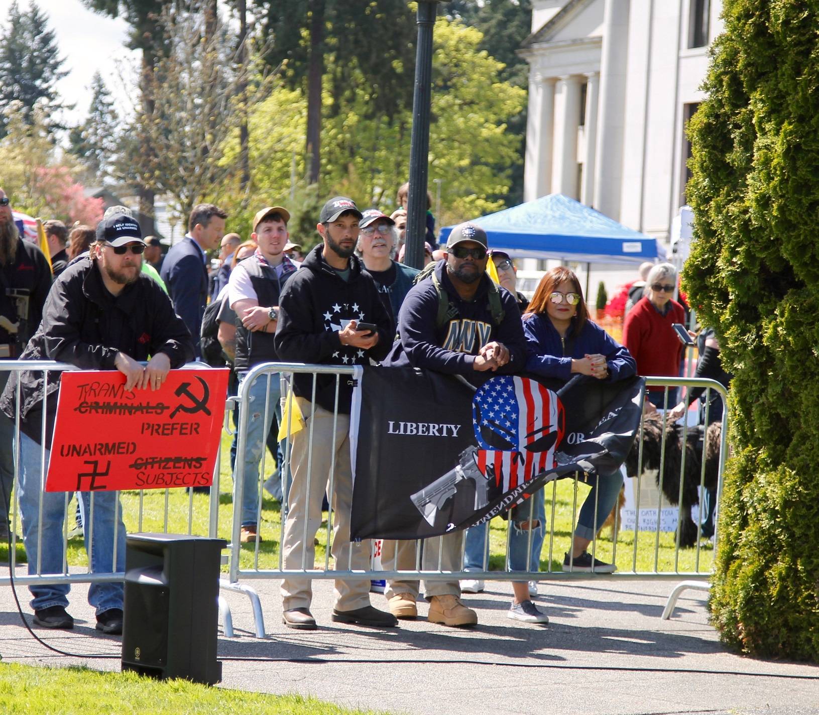 OLYMPIA – Hundreds of people gathered for a “March for Our Rights” gun-rights rally last Saturday on the Washington Capitol campus. The group held a similar protest in April 2018. Speakers from various organizations spoke along with lawmakers including Reps. Matt Shea, R-Spokane Valley and Jim Walsh, R-Aberdeen. Many of the attendees open carried their weapons along with yellow “don’t tread on me” flags.