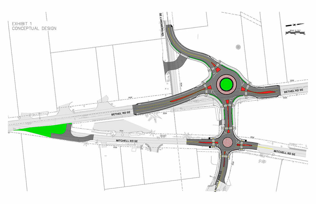 Once completed, motorists traveling on Bethel will traverse a roundabout that will collect vehicles from Southeast Lundberg Road and Lincoln Avenue Southeast. Vehicles on Mitchell will no longer be able to pull onto Bethel — a dodgy effort for even the most experienced of drivers.