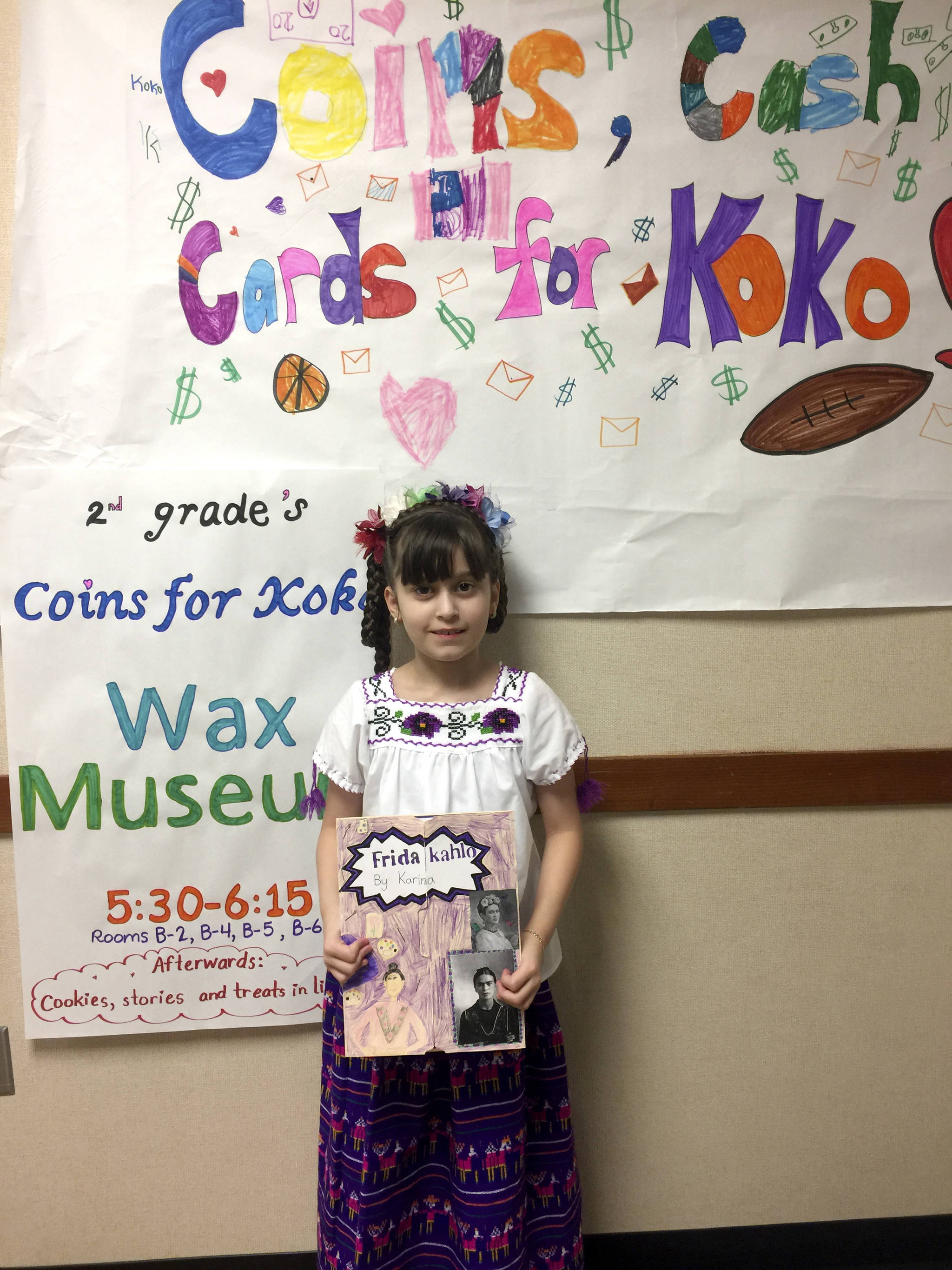 Sixty-six students in four second-grade classes participated in the wax museum event. Actors portraying historical characters such as Sitting Bull, Frida Kahlo, Walt Disney, Dr. Seuss, Amelia Earhart and Elvis came alive with a drop of a coin, sharing their stories and how they influenced the world.