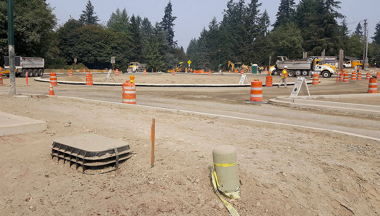 PORT ORCHARD — A layer of asphalt is being laid along one of the two new roundabouts that figure prominently in a major project to widen Tremont Street in Port Orchard to four lanes. Tremont is one of the city’s major arterials leading into downtown.