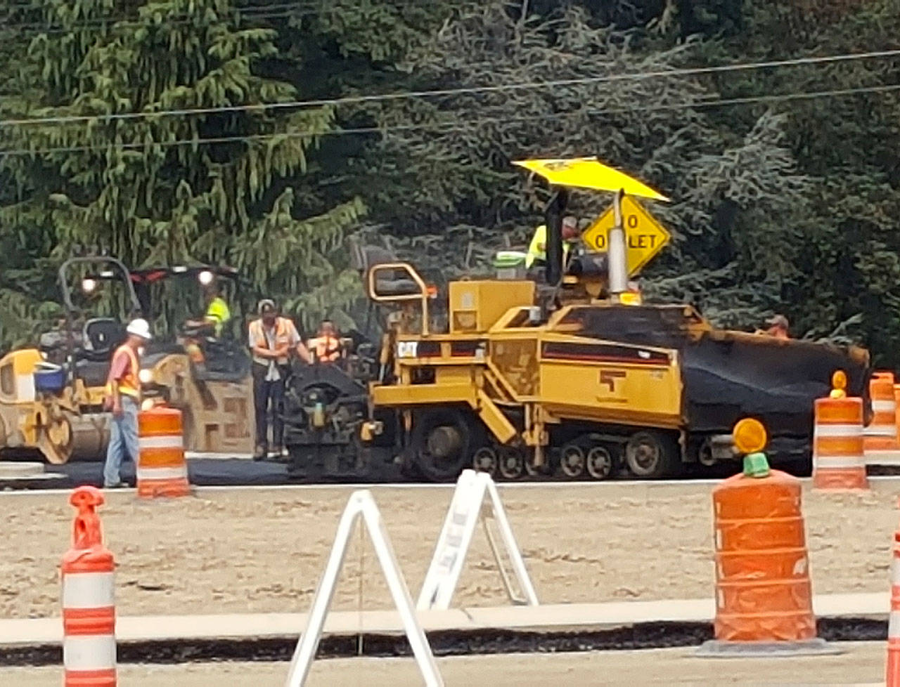Workers this week began asphalt work at the Tremont Street and South Kitsap Boulevard intersection roundabout near the interchange at SR 16. Later this year, they will start paving work up the hill at a second roundabout being constructed at Tremont and Pottery Avenue.