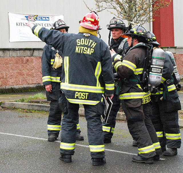 August: South Kitsap Fire and Rescue firefighters train on techniques to fight commercial building fires. In 2017, SKFR’s Prop. 1 property tax levy lid lift proposal was approved by voters. (Bob Smith | Kitsap Daily News)