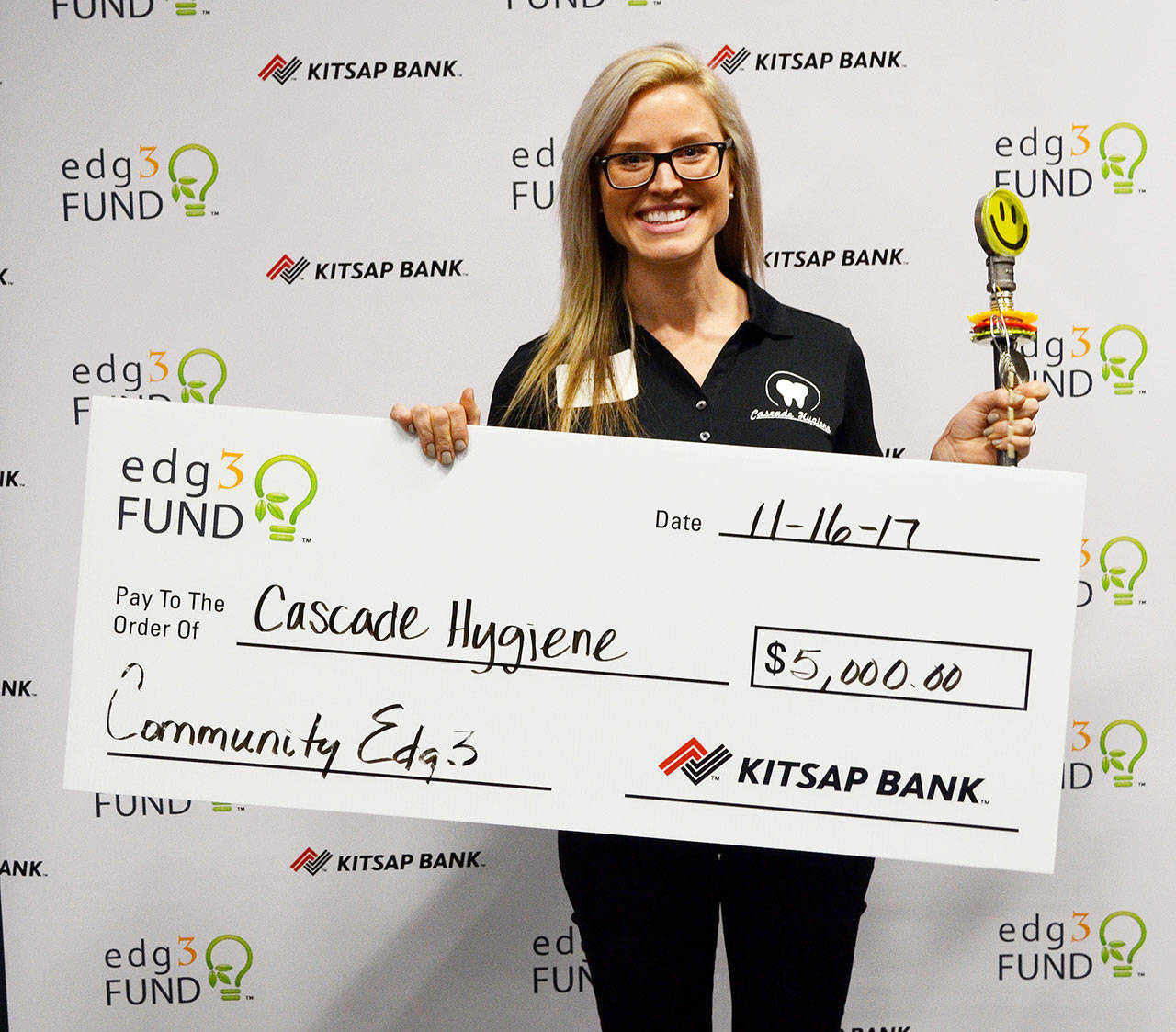 A semifinalist in the competition, Erin Pocuis, owner of Cascade Hygiene of Bremerton, was presented the $5,000 Community edg3 Award.