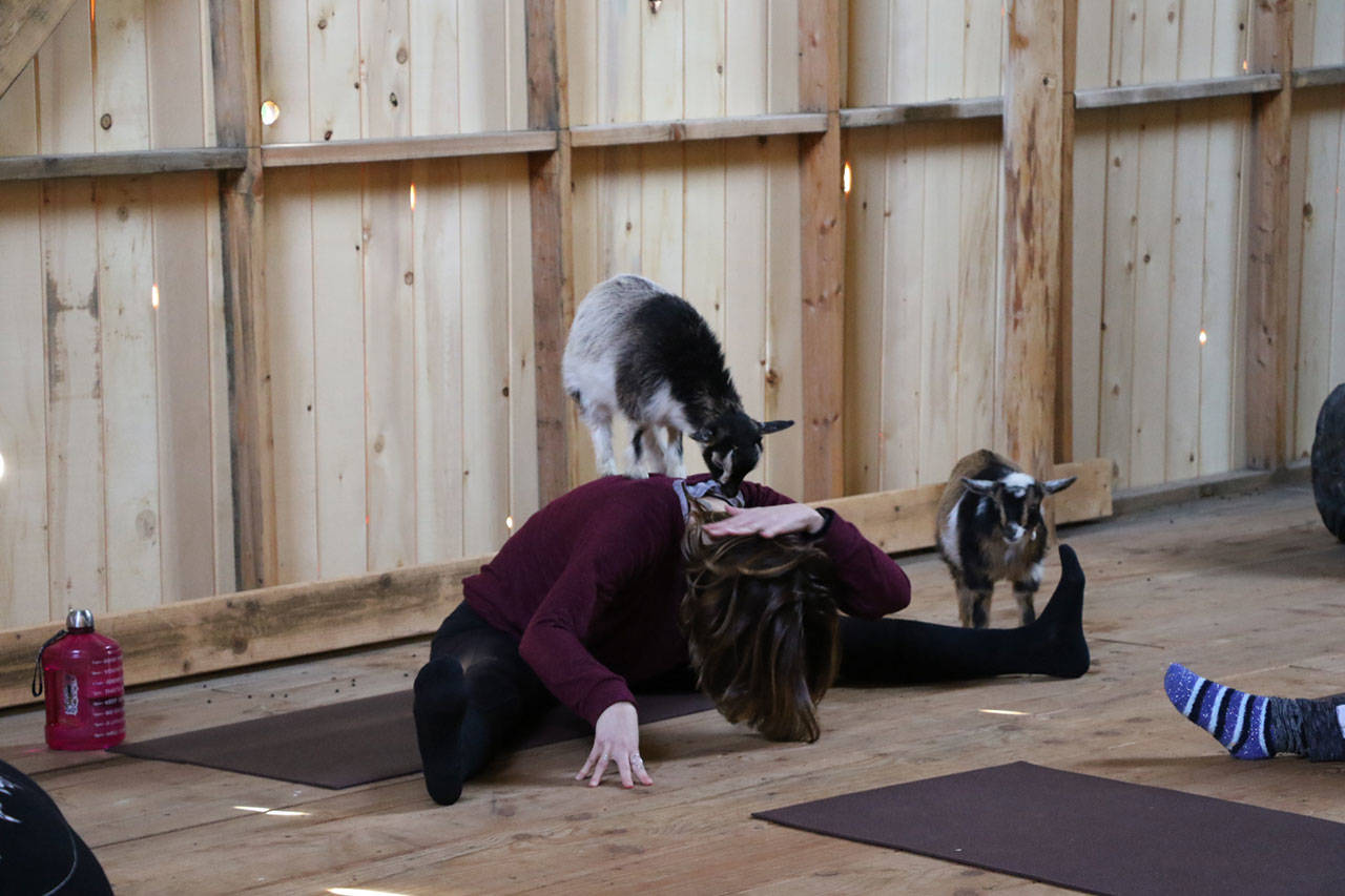 The Smithshyre farm on Foss Road near Poulsbo is perhaps best known for offering organic farm fresh foods, but now the farm is bringing a growing fad to the Kitsap Peninsula: goat yoga.