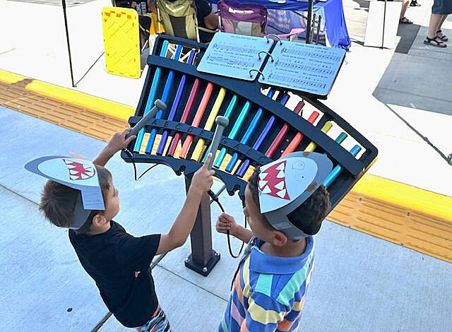 Attendees strolled over giant piano keys embedded in the street; the black and white keys are said to be large enough to be seen from space. People also viewed a colorful mural commemorating Jones. Kid-friendly, interactive musical instruments were scattered throughout Quincy Square, including a xylophone, chimes, and percussion instruments.