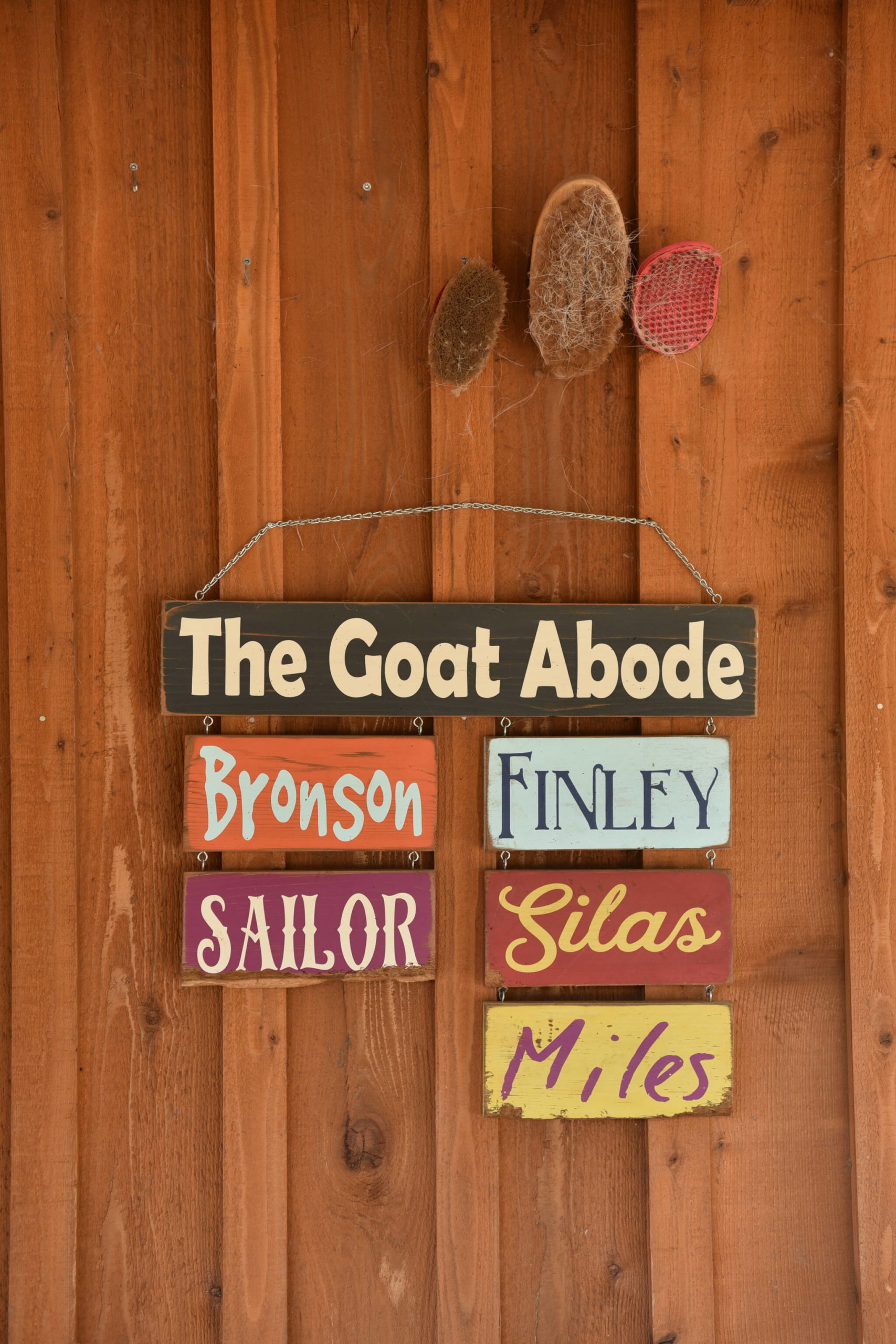 Five residents live in the goat abode; Bronson, Finley, Miles, Sailor and Silas. “They are just the gentlest guys.” They were bottle raised, “and so they love us,” Muffoletto said.