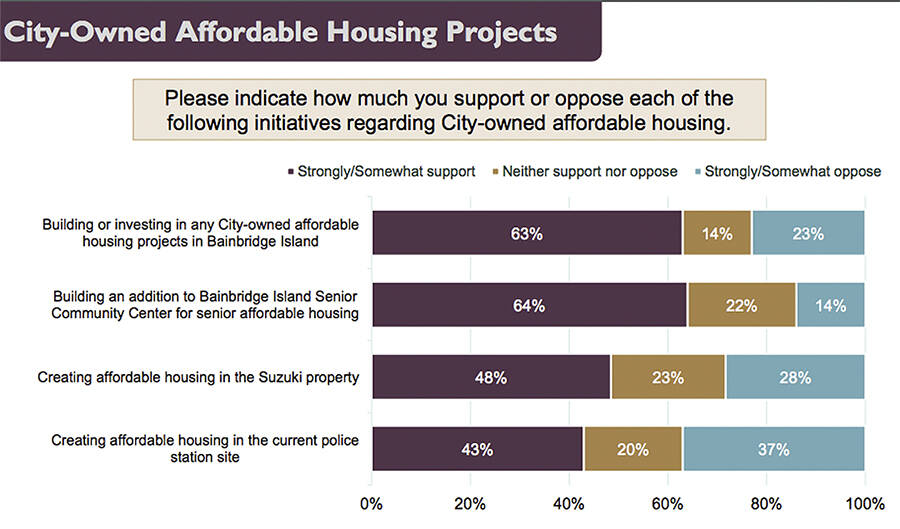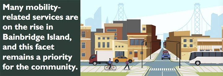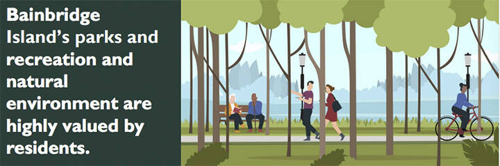 Overall, 96% like the natural environment, 94% feel safe, 93% like the parks, 87% like education, culture and the arts; 78% feel connected, 78% like the economic health, 70% say there is good health and wellness, 64% like the layout of residential and commercial on BI, 46% favor the utilities and 43% like the transportation.