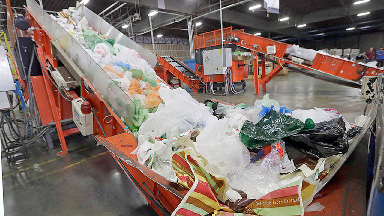 Kitsap County officials say plastic bags are a major headache for recyclers, who must repeatedly stop recycling equipment to pull out bags that jam the rollers. (File photo)