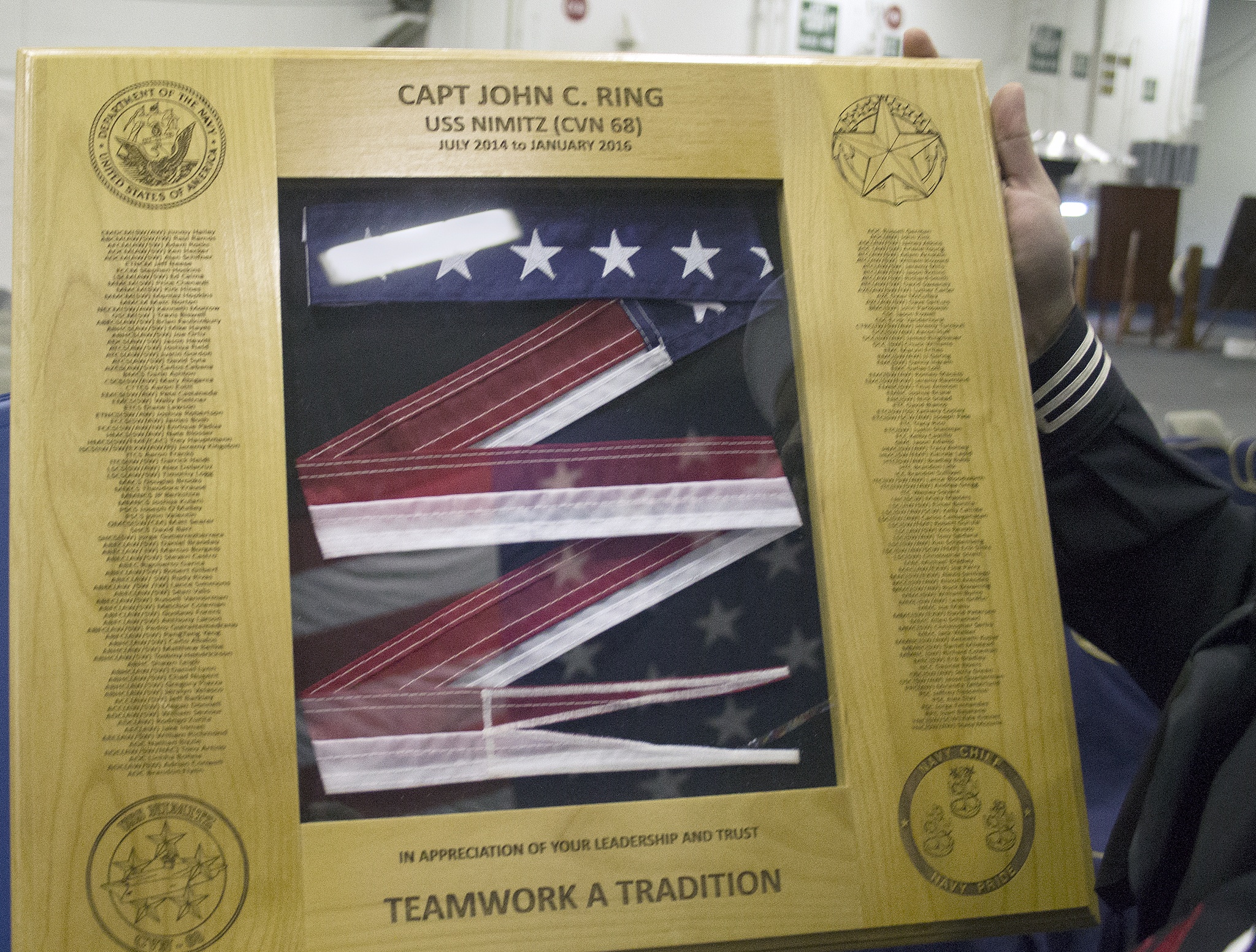 For the next hour, Navy leaders, beginning with Vice Adm. Mike Shoemaker, USN, Commander Naval Air Forces, and Rear Adm. William D. Byrne, would praise the accomplishments of Capt. Ring and his replacement, Capt. Lenox. Ring and Lenox in turn would speak. All would tell mildly embarrassing stories about one another.
