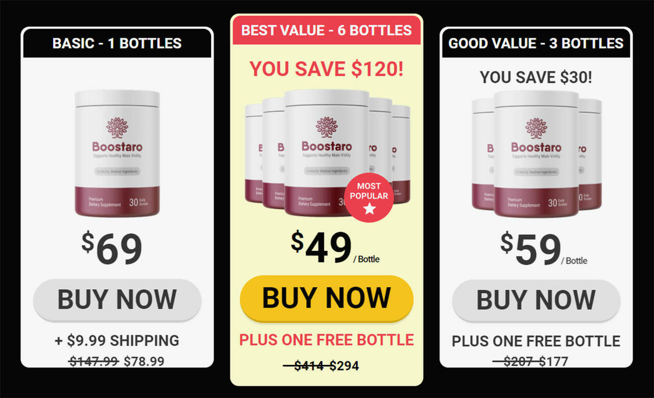 - If you buy six bottles of Boostaro, it will last you six months. To buy this package, you have to pay $294, and this package also allows people to enjoy free shipping.