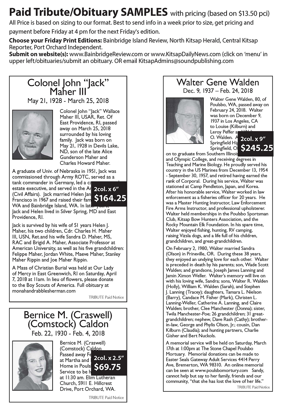 Contact us via mail or phone: Kitsap Daily News 911 Hildebrand Lane NE Suite #202 Bainbridge Island, WA 98110 206-842-6613