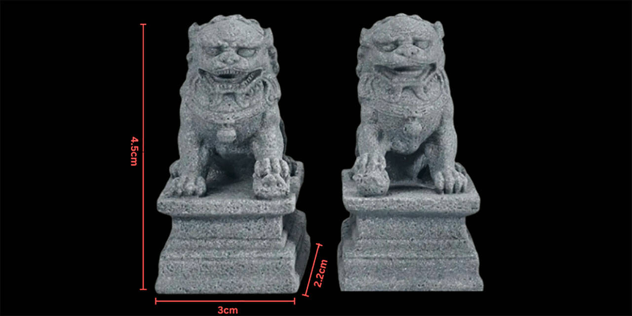 Each lion is just 1.8” (4.5cm) high with a 1.2” (3cm) x 0.9” (2.2cm) base. Because of their small size, the lions are easy to set up anywhere at home – even if you don’t have much space.
