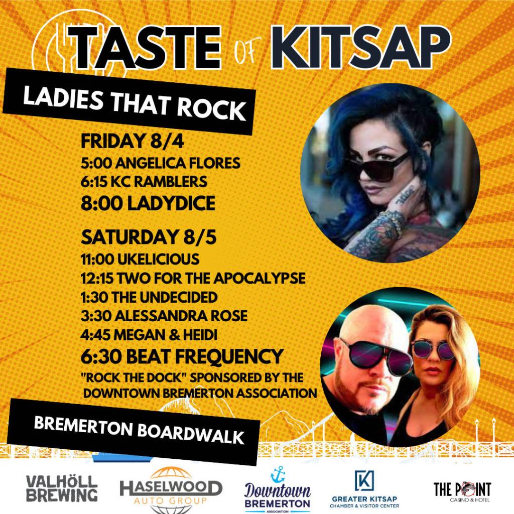 On Friday, Aug. 4 from 5 p.m. to 9 p.m. and Saturday Aug. 5 from 11 a.m. to 8 p.m., grab your favorite people and head down to the Bremerton Boardwalk for amazing local food and ‘Ladies who Rock,’ featuring live music performances featuring female musicians.