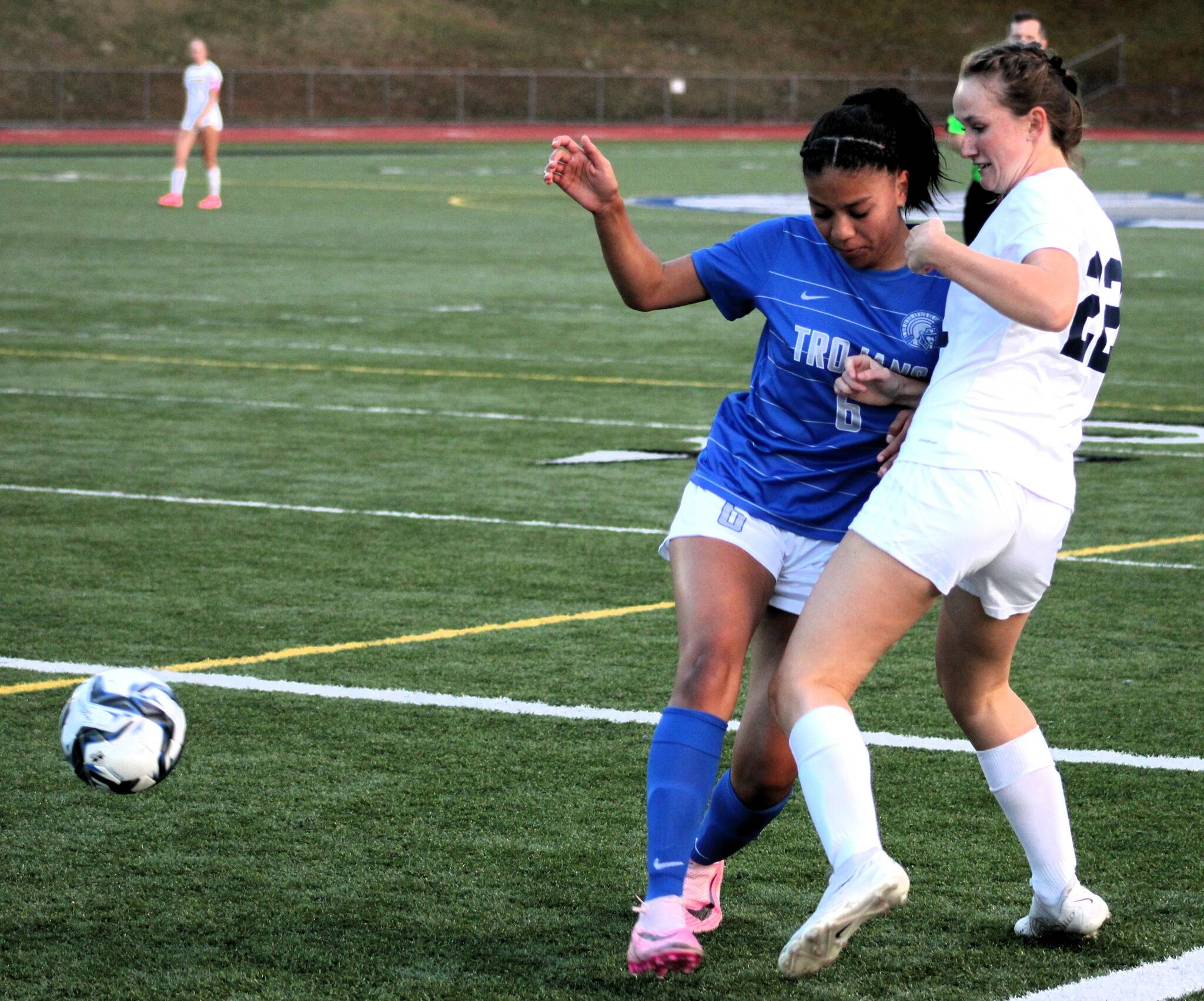 Even when the Spartans netted their first goal, it would come on a bit of controversy. Longtime Trojans coach Steve Haggerty was calling for an offsides whistle against Romney, who had dribbled the ball past the goalie and touched the ball with ease into the undefended net.