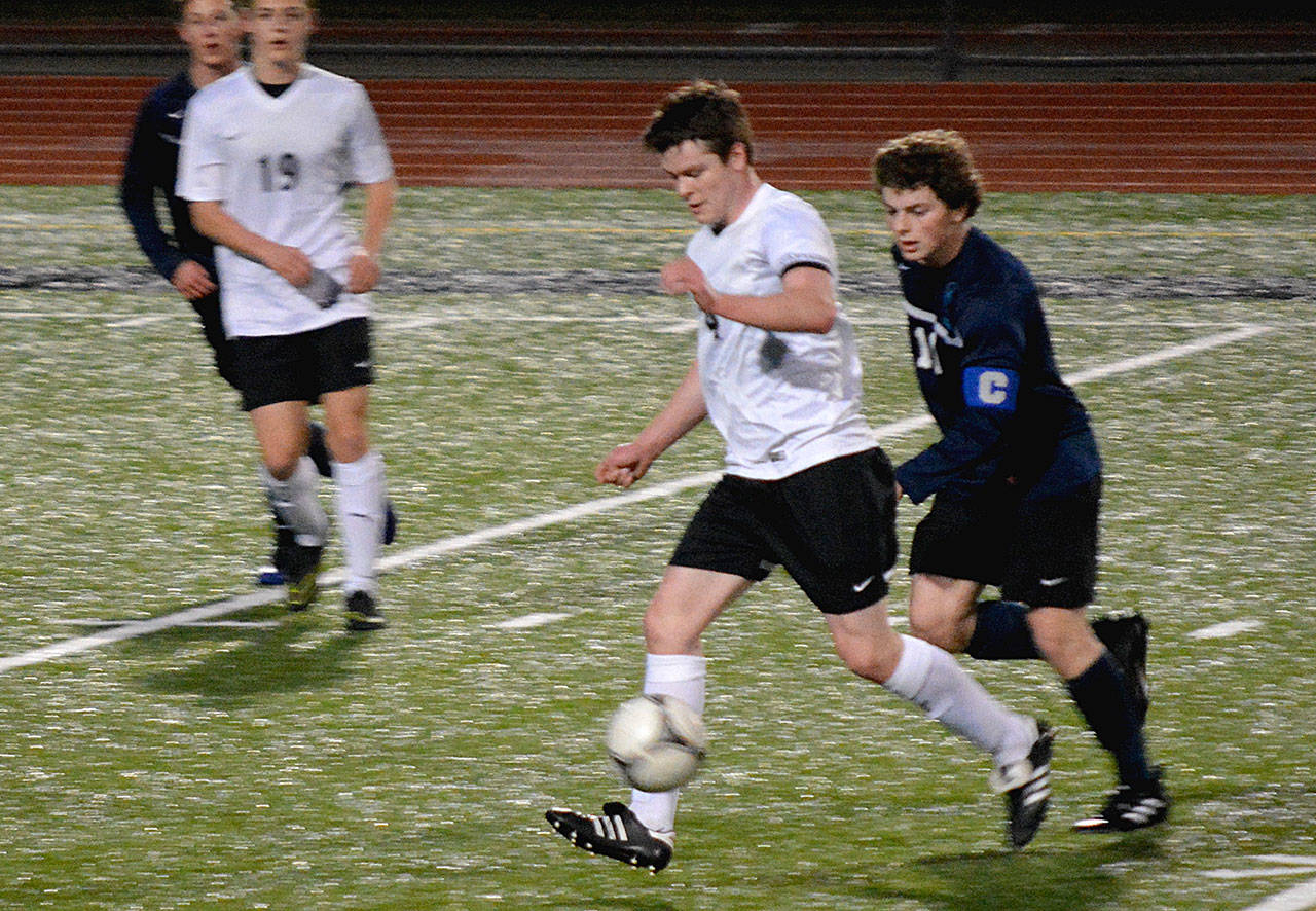Less than a minute later, Central Kitsap scored again when Taylor Mimaki beat his player around the corner to lay a ball back across the box. Skyler Stephens was there to place the ball in the side-netting and go up 3-0.
