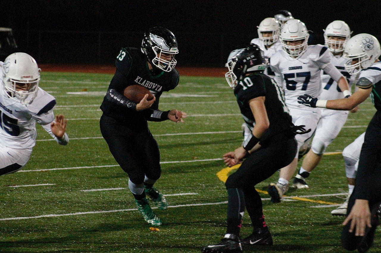 Quarterback John Hartford set Klahowya single-season passing records with 1,833 yards and 19 touchdowns. Drew Dickson was also a first-team selection with 45 receptions for 751 yards and nine touchdowns.