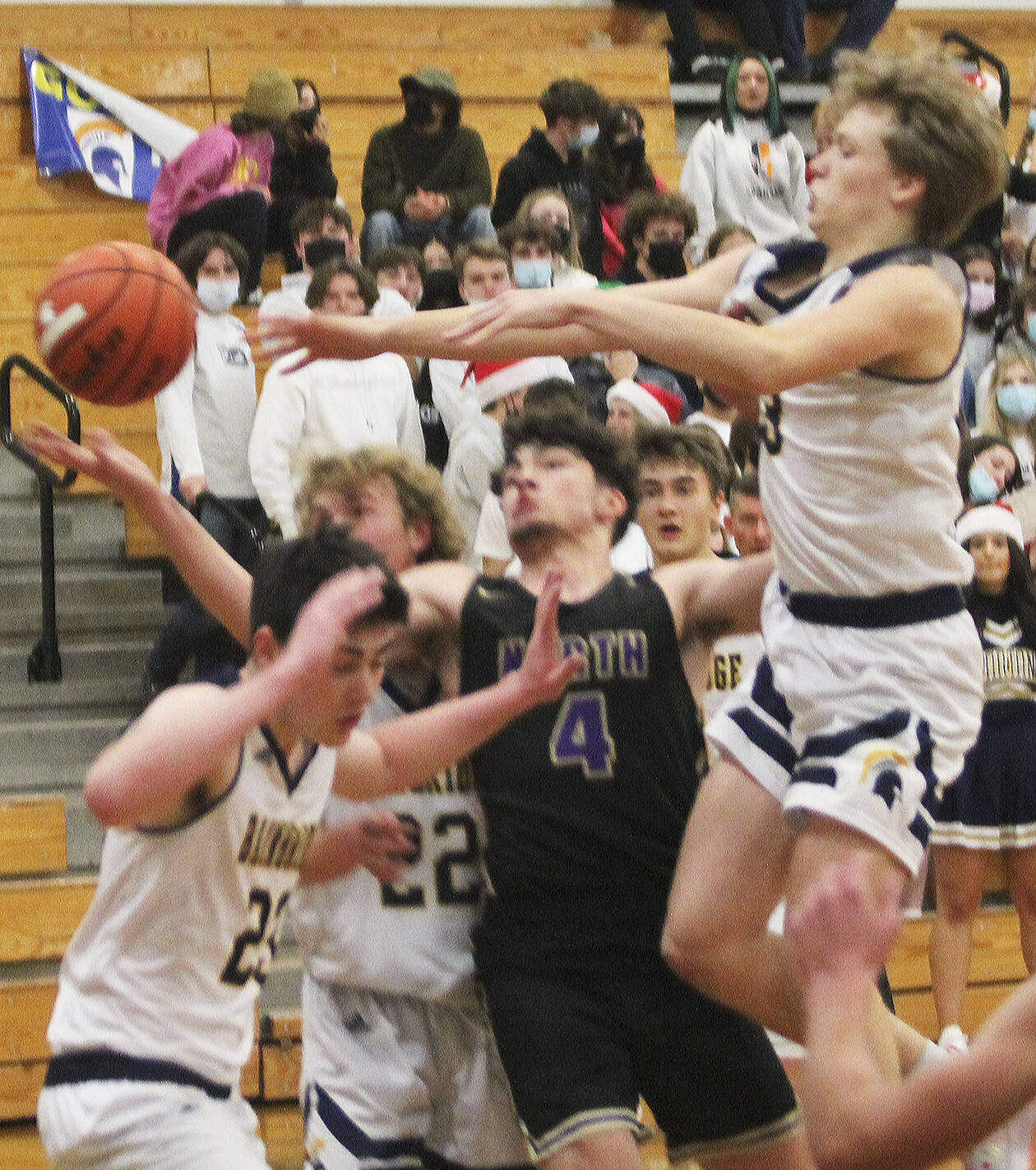 Orness scored on a drive and fastbreak, then made a nifty pass inside to Aiden Olmstead for another bucket. Not only was BI cold from the field, they also missed some foul shots and was called for two offensive charging fouls.