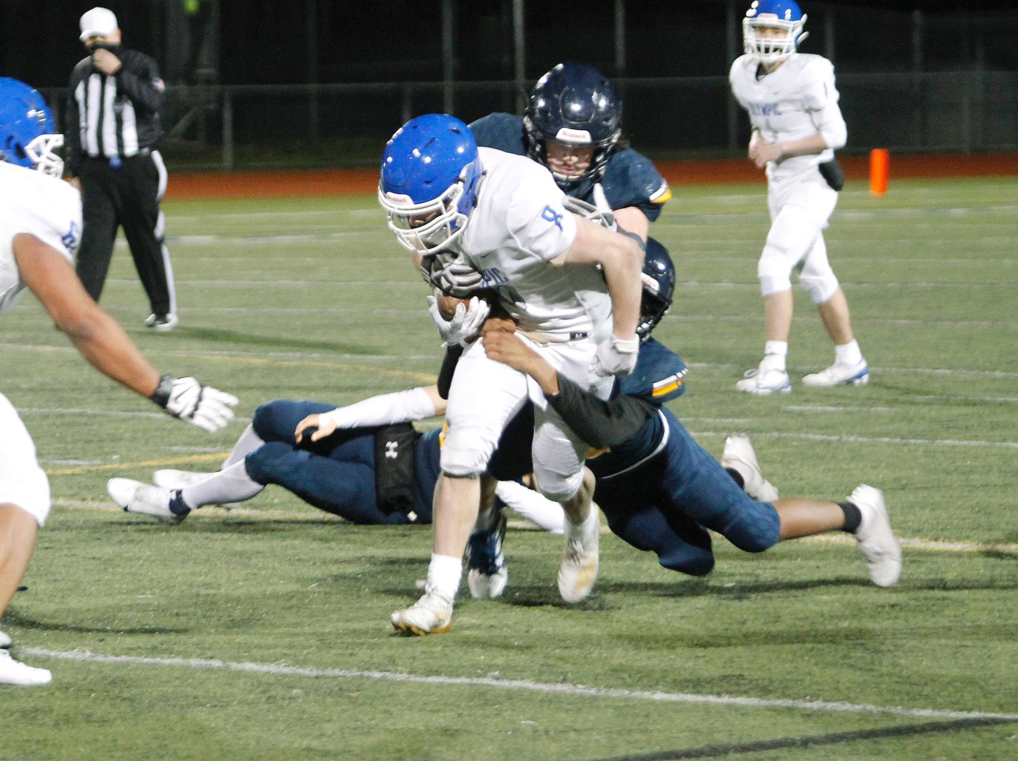 Jacob Manavie came up with a pick-six late in the fourth quarter to propel the Eagles over North Mason in Belfair. Manavie also caught a 31-yard pass from quarterback Damon Clarke just before the end of the first half to tie the game at 7. Manavie finished with three receptions for 49 yards. Hunter Wallis led Klahowya with 55 yards rushing to go with five receptions for 25 yards.