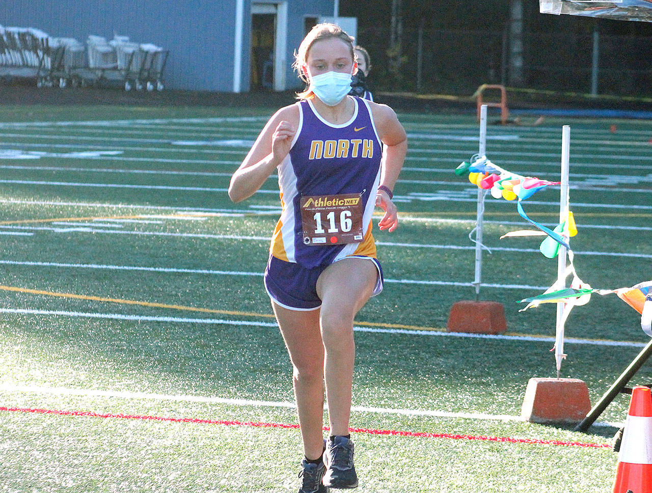 North Kitsap freshman Ingrid Burchill finishes first among her teammates. (Mark Krulish/Kitsap News Group)