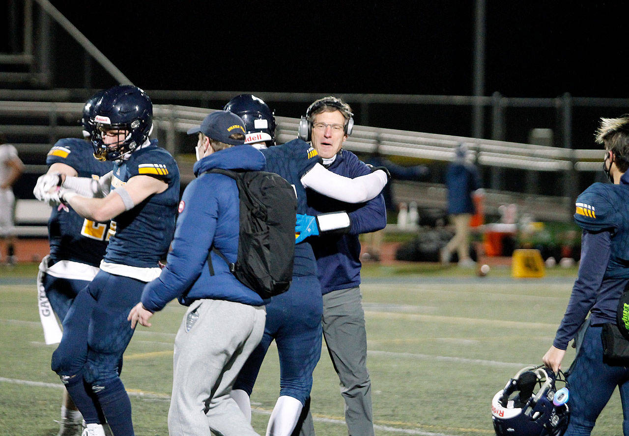 After one final stop on defense, Bainbridge was in victory formation. That unit had recovered from yielding 21 points in the second quarter and, led by big plays from Axel Gibson, Sasha Herrmann, Brian Taylor, Micah Bryant and Matt LeDorze, held the Trojans scoreless in the second half.
