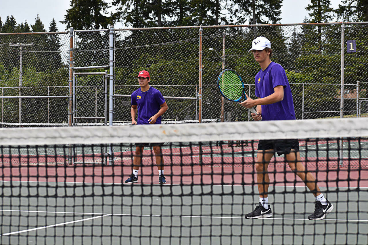 Jones and Smith swung the momentum in their favor, winning the set in a 7-6 tiebreaker. Shortly after, the North Kitsap duo took over the match, winning in three sets. Afterward, DeVries had a conversation with the Pullman coach.