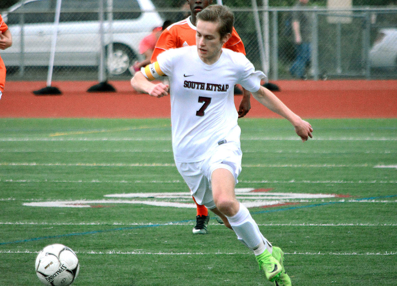 South Kitsap took an early 1-0 lead on Larson’s goal in the seventh minute. Eduardo DeLaCruz won possession of the ball at midfield and played a long ball over the top to Larson. The senior forward settled it down and popped it into the net.