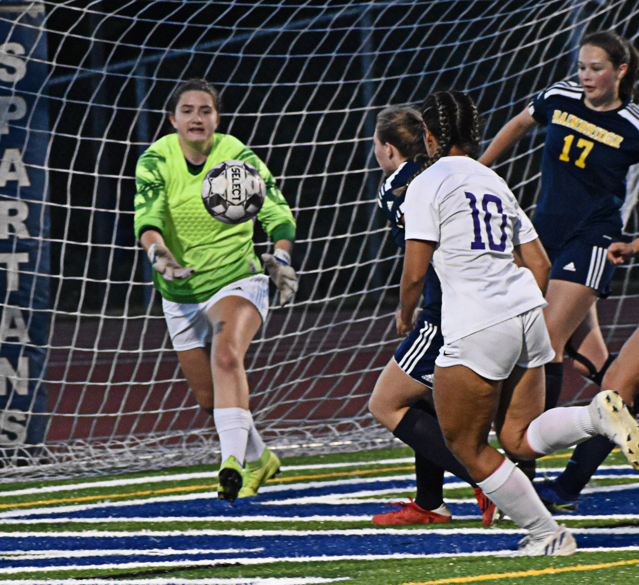 Bainbridge responded a few minutes later when Gabby Weis shot from outside the box. After battling in the midfield, Bainbridge marched down, and Weis volleyed the ball into the back of the net to give the Spartans a 1-0 lead.