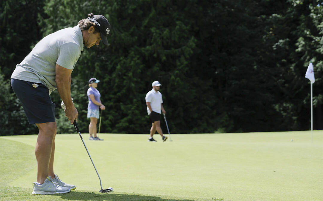 28 sports celebrities led teams of golfers at the tourney. Some are well-known to Seattle fans, like Steve Largent (NFL Hall of Fame Seahawk wide receiver), Paul Moyer (Seahawk safety), Jim Zorn and Warren Moon (Hawks quarterbacks), Mack Strong (Seahawk fullback), Norm Johnson (Hawk kicker), Bret Boone (Mariners second baseman), John Olreud (M’s first baseman, two-time World Series champion and 1993 batting champion) and Jack Sikma (NBA Hall of Fame, Sonics center-forward).