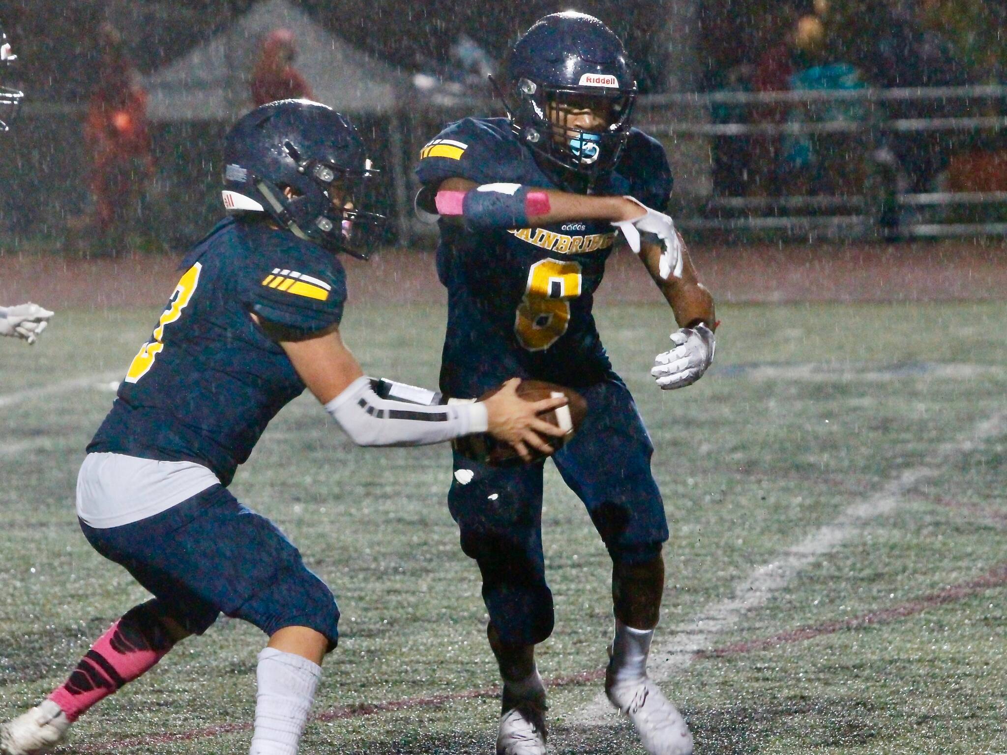 “Weather is a great equalizer,” North Kitsap coach Jeff Weible said. “We obviously had trouble throwing the ball tonight. Give Bainbridge credit, they played hard and had a good game plan.”