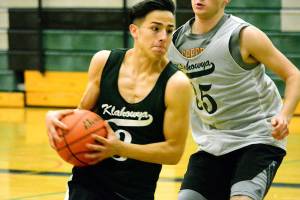 <em>Klahowya senior Tim Coots (3) drives into the paint during his team’s practice on Nov. 27.</em>                                Mark Krulish/Kitsap News Group