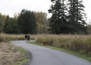Walkers stroll on Clear Creek Trail Monday. The Clear Creek Task Force is working with Kitsap County to extend the trail north to Kegley Road.