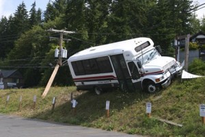A Kitsap Transit bus collided with a telephone pole near the intersection of Front Street and Torval Canyon Road