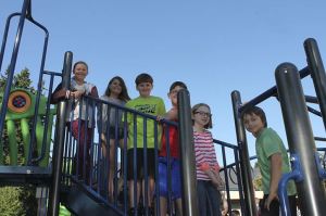 School kids walk through the Tunnel of Hope on the first day of school Sept. 9 at South Colby Elementary in Port Orchard.