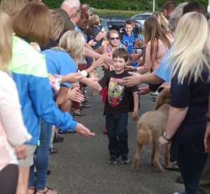 TUNNEL OF HOPE at SCE First-grader Dylan Franklin is greeted by South Colby Elementary School teachers and staff…