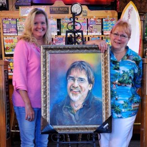 Shelly Wilkerson, owner of Crazy Lady on Bay Street, presents a portrait of Darryl Baldwin to Shelia Cline…