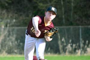 Nathaniel Beers pitched five innings for South Kitsap against Bellarmine Prep, scattering eight hits and striking out four. (Mark Krulish/Kitsap News Group)